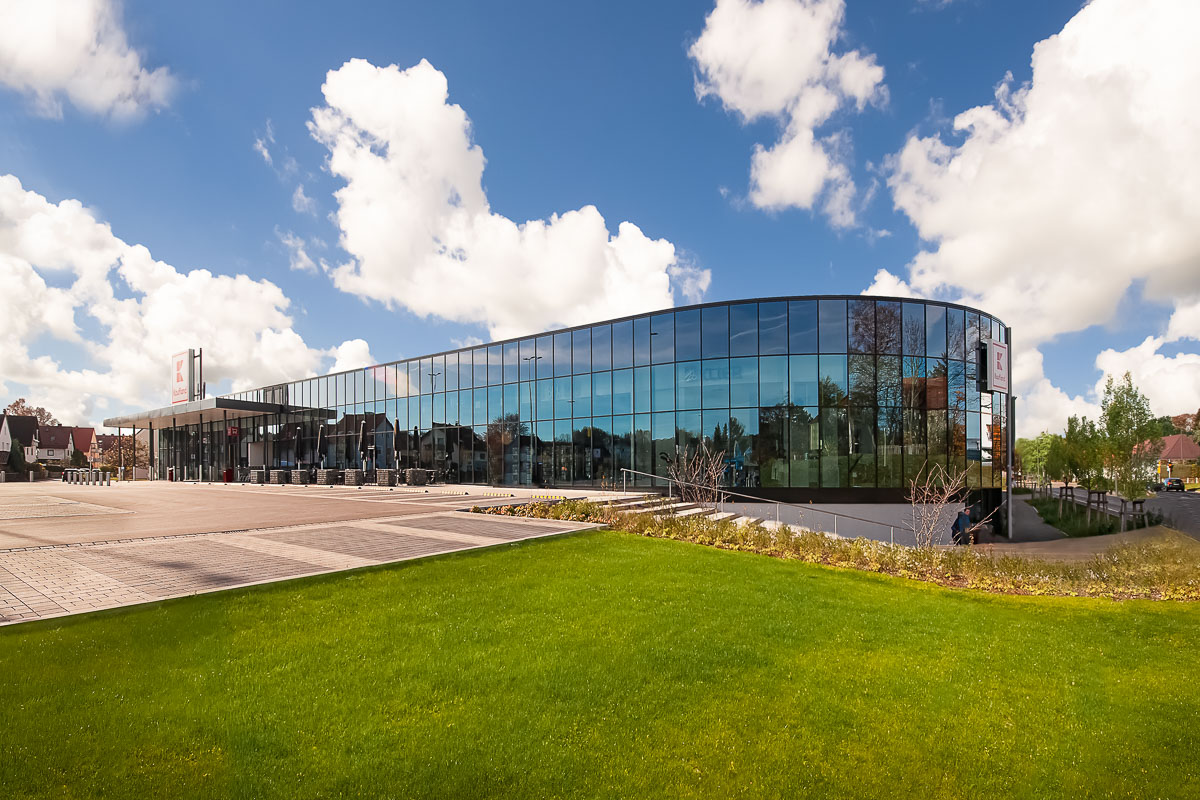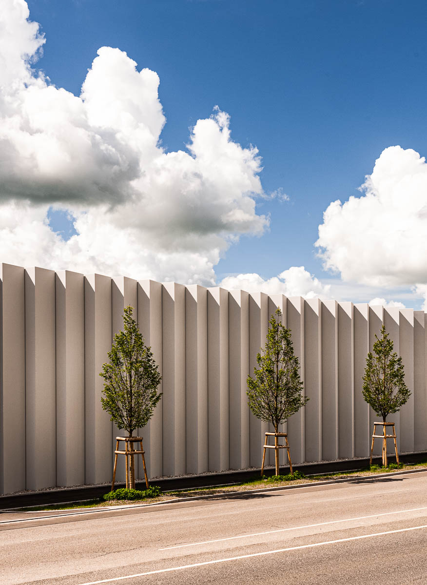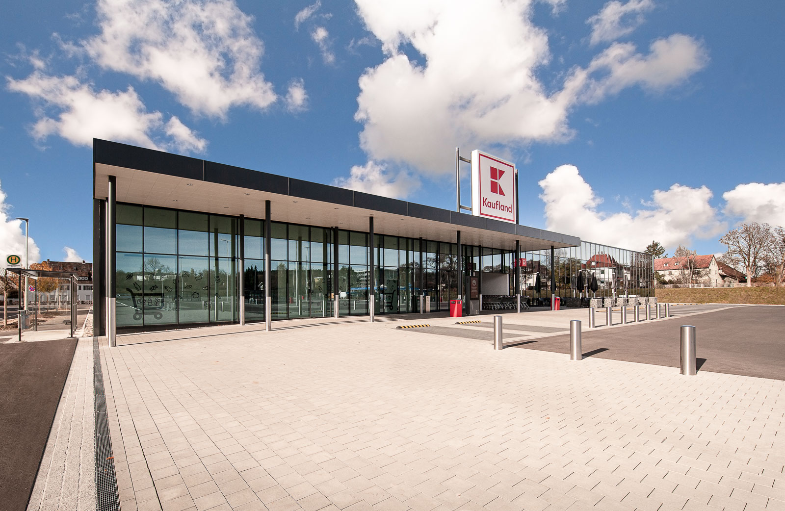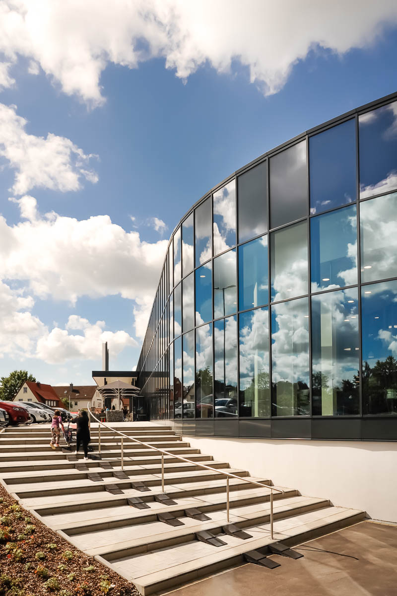 In exponierter Lage am Ortseingang von Kaufbeuren stand das in die Jahre gekommene und nicht mehr zukunftsfähige Gebäude. Es entstand der Neubau in optisch markanter Fassadenfaltung aus gefaltetem Beton und im Osten der Eingang in großzügiger Glasfassade.