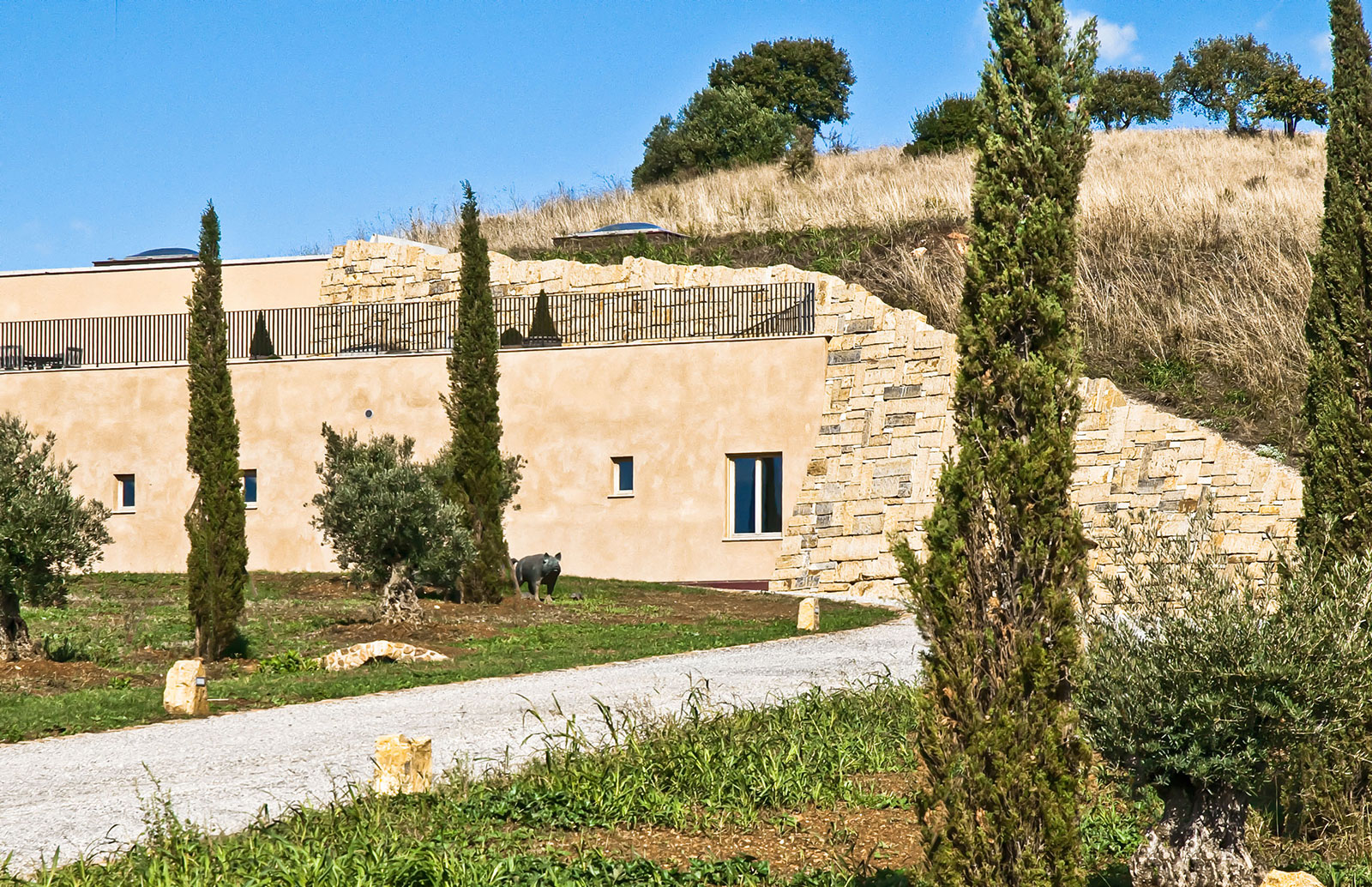Das Weingut in der Toskana zeigt sich ortstypisch. Besonderes Highlight ist der Weinkeller mit seinen Verköstigungen.